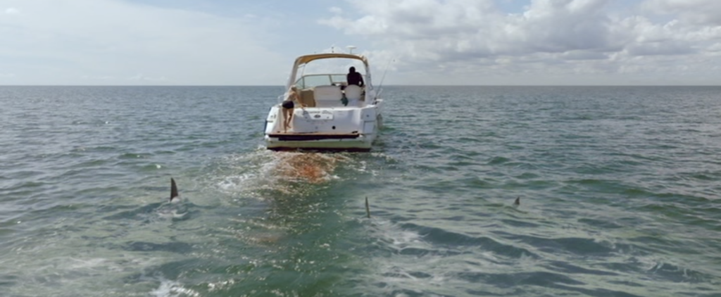 しかも、そこは獰猛なサメが大量に生息している海域で、犯罪組織とジアに容赦なく襲いかかるのだった!!