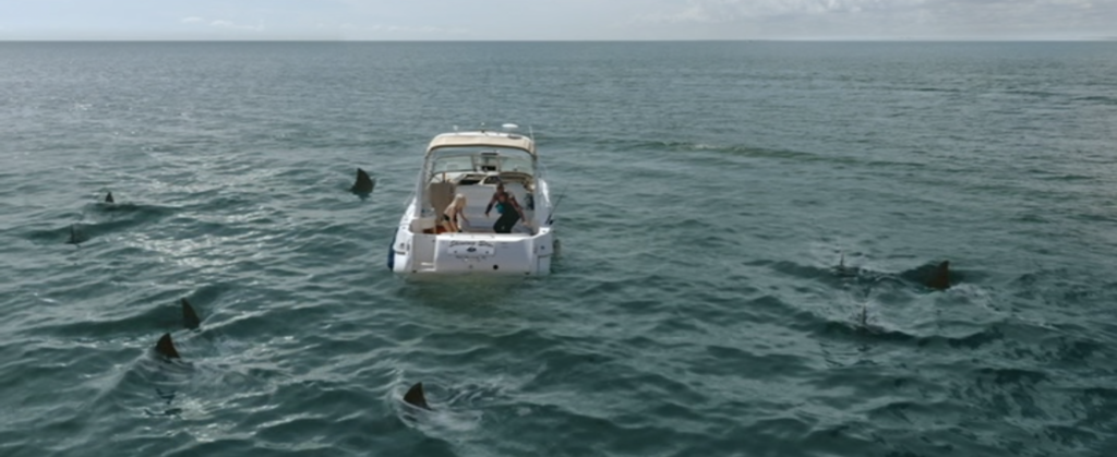 今回は、得意のサメパニックの王道スリラー作品、、、、、、、と思わせながら、後半別ジャンルの要素を加えていく、