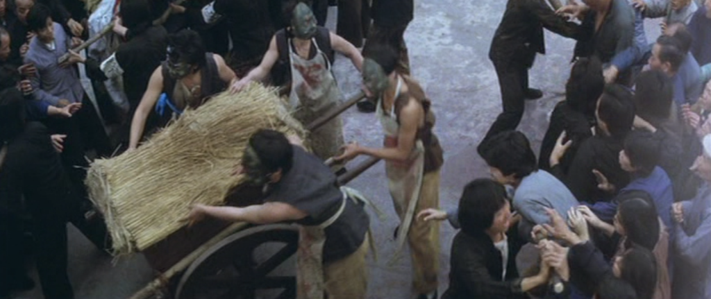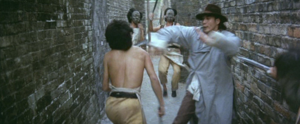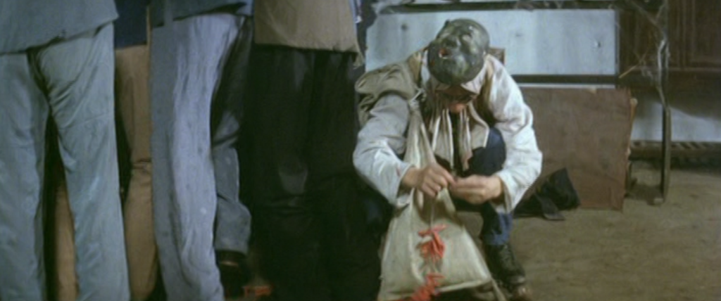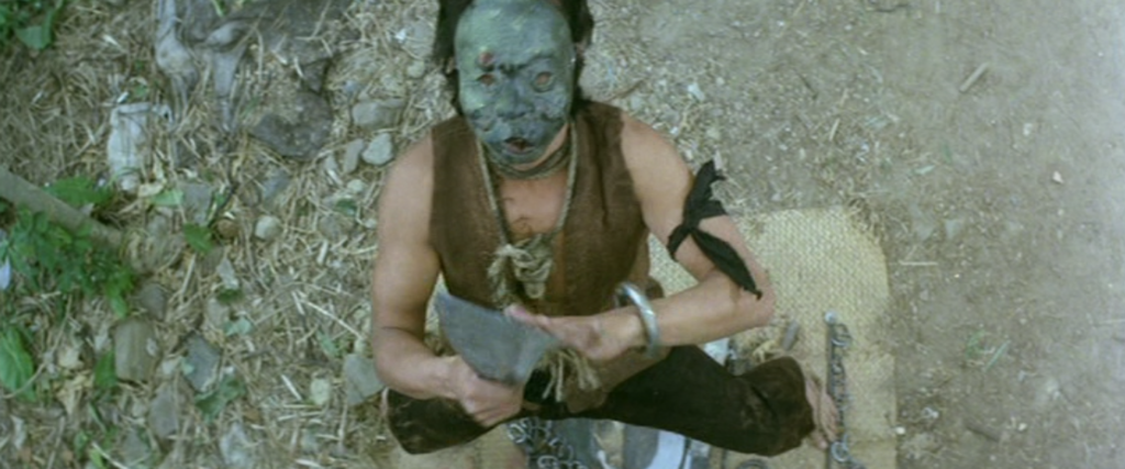 で、着いて早々に村人が化けた仮面軍団に襲われ、危うく残酷な方法でやられそうになりますが、999はカンフーの達人だったため、
