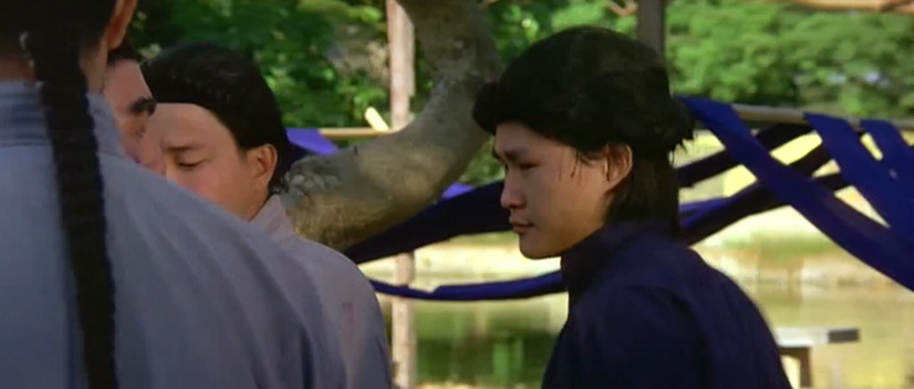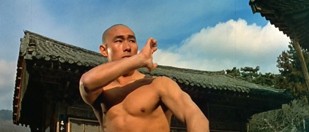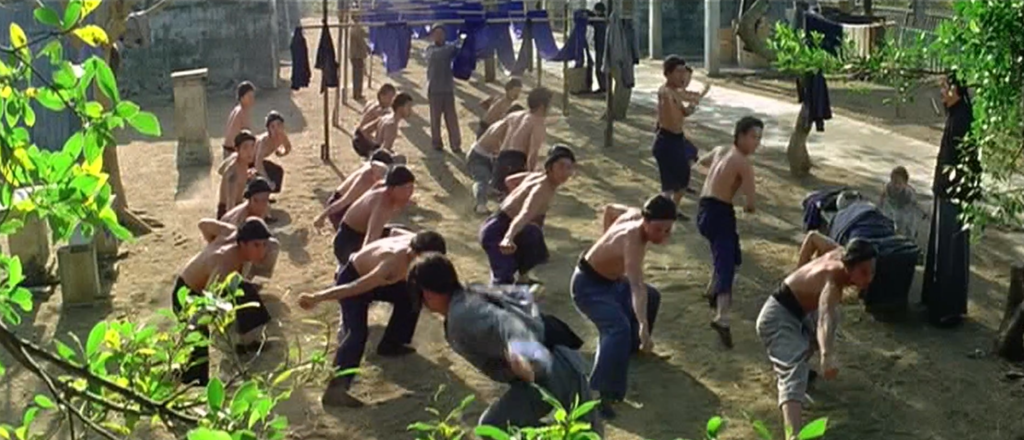 少林寺で心根の優しい兄弟子(ジェームズ・ティエン)や兄弟弟子と共に、厳しい修行に耐え、メキメキとカンフーの腕を上げて行く日々の生活から始まります。