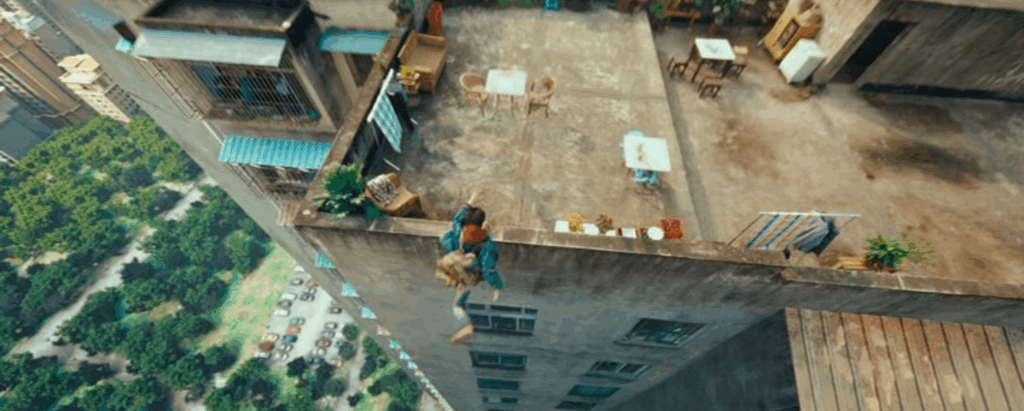 そこに街中でのワイヤーワークのような大掛かりなロケ映像が加わりますので、てっきり高所での撮影なんかは、全てセット撮影とCGとの合成映像なのだと思っていたのですが、