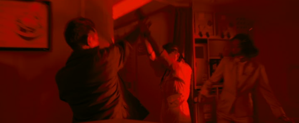 本作では、その設定をしっかりとドラマに盛り込んで、しかもアンディがハイジャック犯と直接格闘などで戦うシーンごとに、癇癪を起している状態を真赤な画面で表現して、