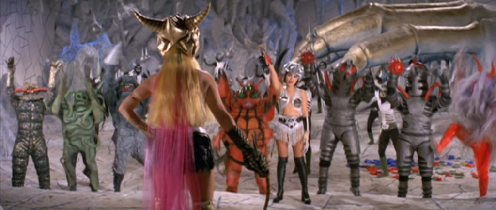 で、地球侵略を目論む怪人軍団の女性ボス氷河魔王女役で、(液体人間オイルマン)(詳しくはこちら)や(蛇姦)等の