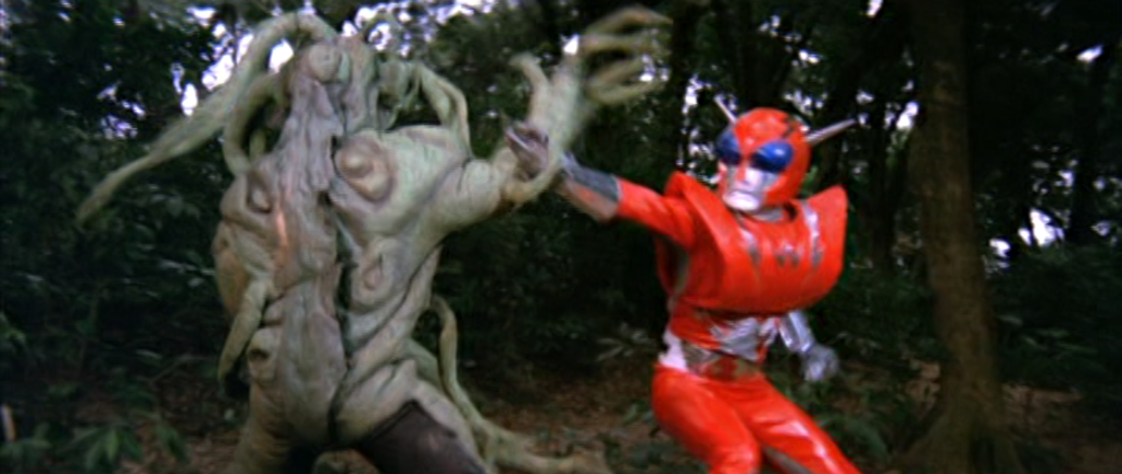 ついに、改造手術が終了したインフラマンが華麗にジャンプを繰り返して怪人プランターに攻撃を加え、