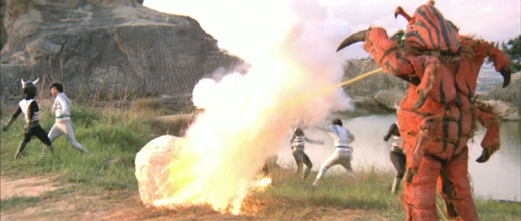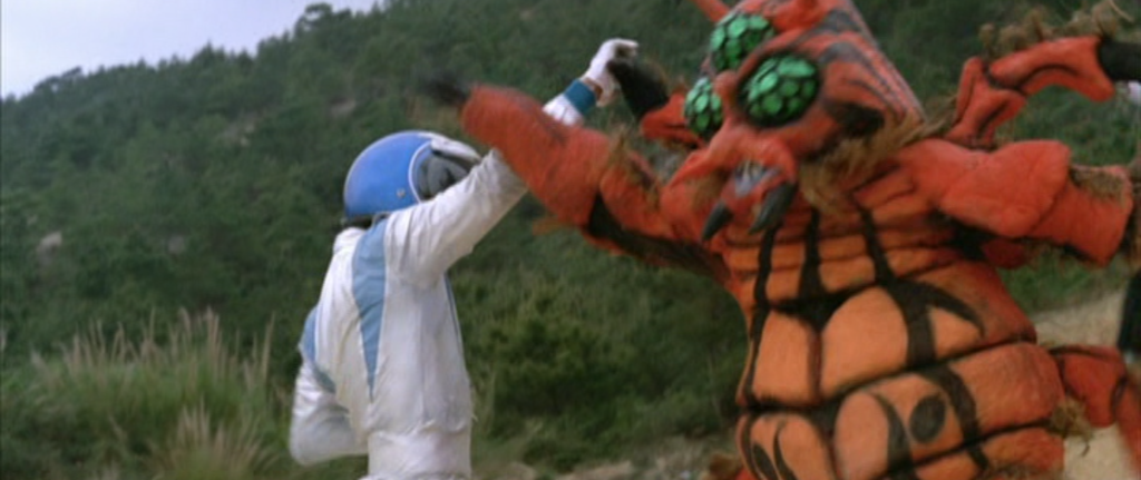 さらに、悪に容赦のない正義のヒーロー・インフラマンは、自身はそのままの巨大化サイズを変えることはなく、縮んで弱っている怪人に対して、