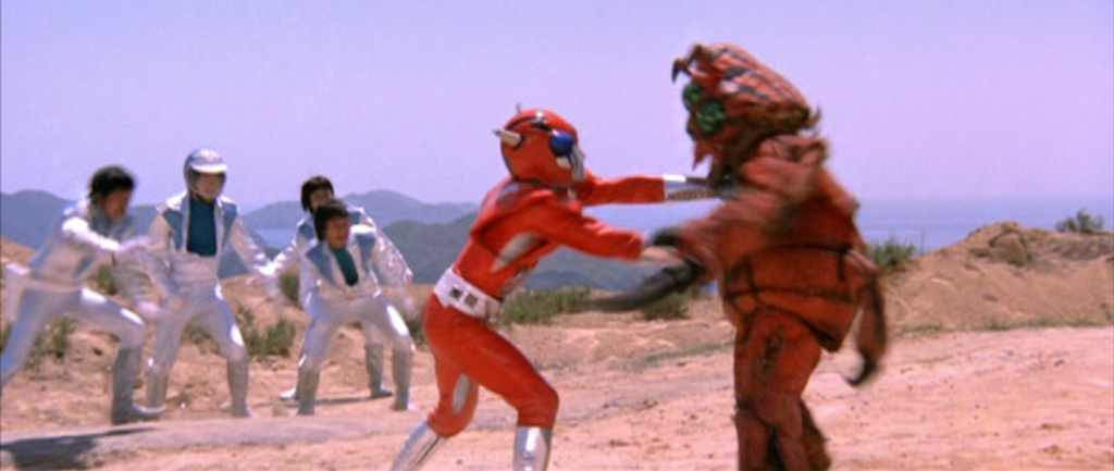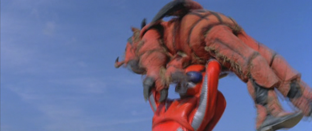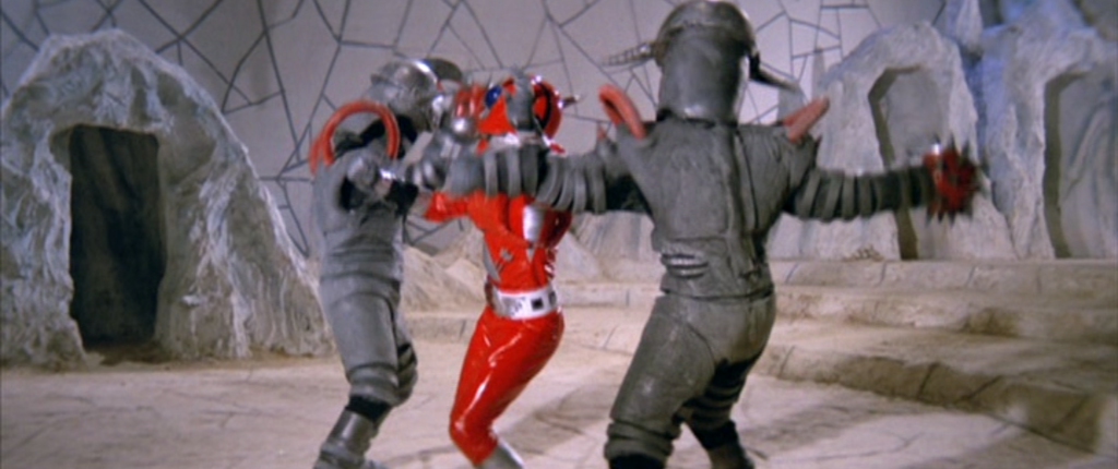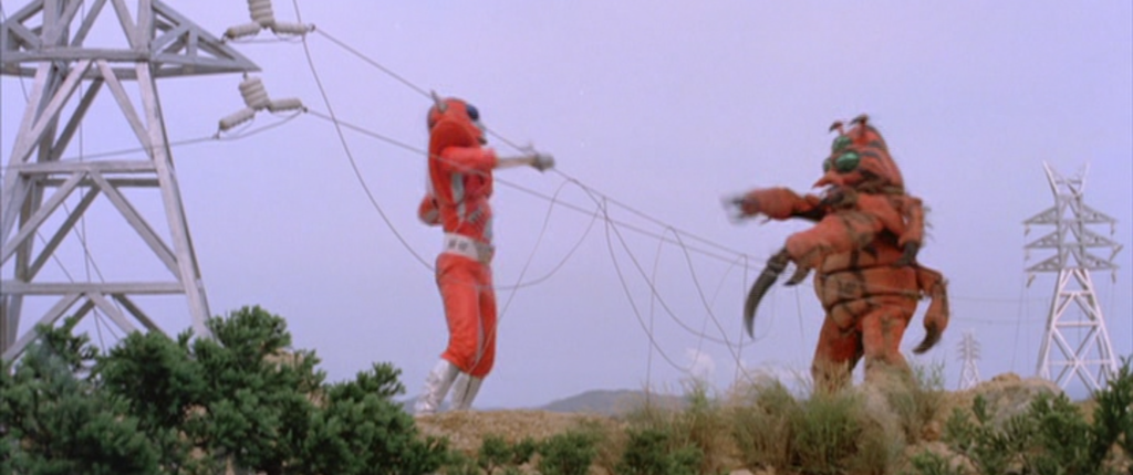 しかし、怪人の一人が、格闘中に巨大化するという反則技を繰り出した事で、人間サイズのインフラマンは大苦戦する事になりますが、