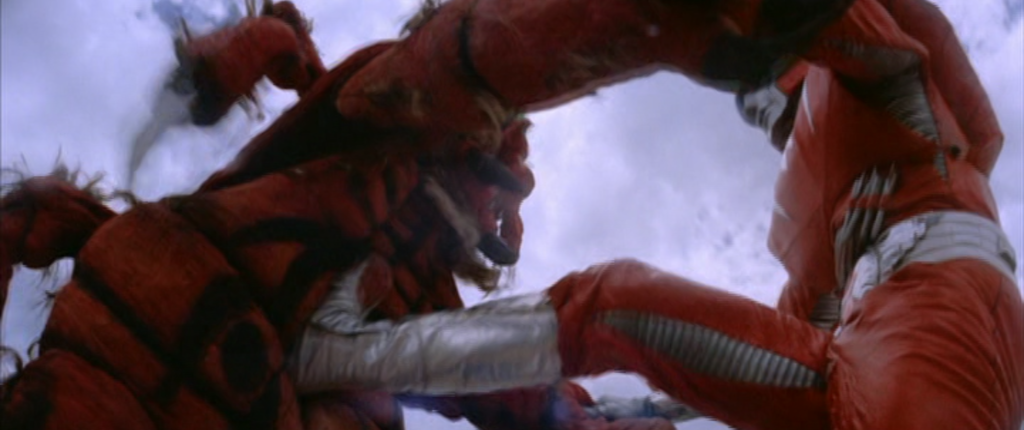 自身も巨大化して、巨人サイズで格闘を繰り広げます。