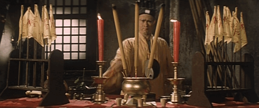 で、その悪女夫人と共に悪事を働く極悪道士役で、(妖術秘伝 鬼打鬼)(詳しくはこちら)や(燃えよデブゴン 正義への招待拳)(詳しくはこちら)等、