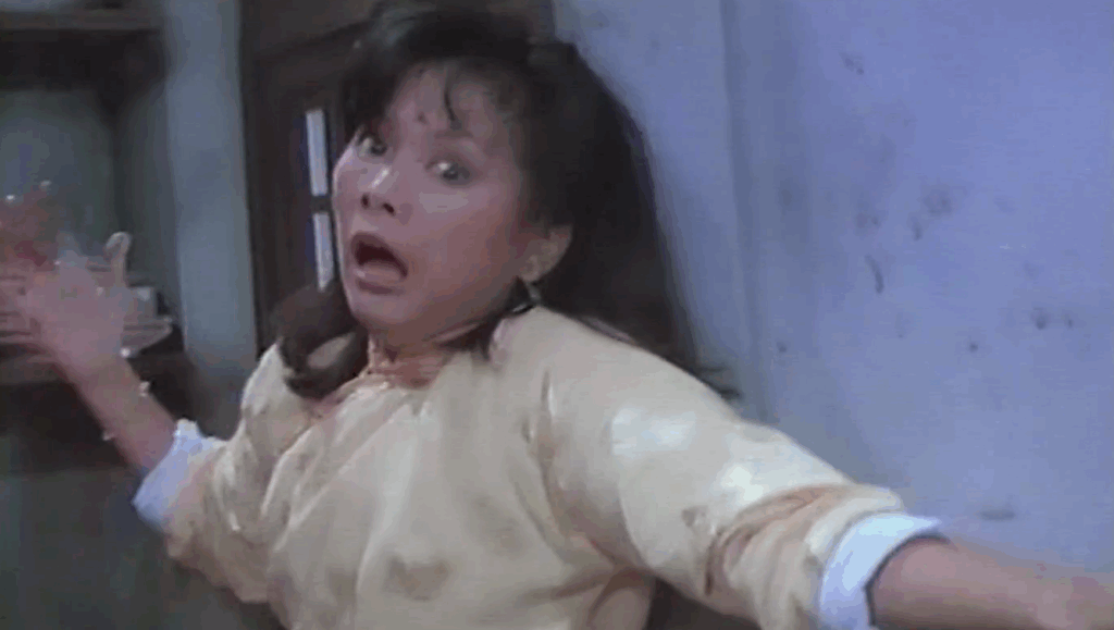 で、ゴーストに襲われる女性劇団員役で、(燃えよデブゴン 正義への招待拳)(詳しくはこちら)や(ポリスストーリー)等の