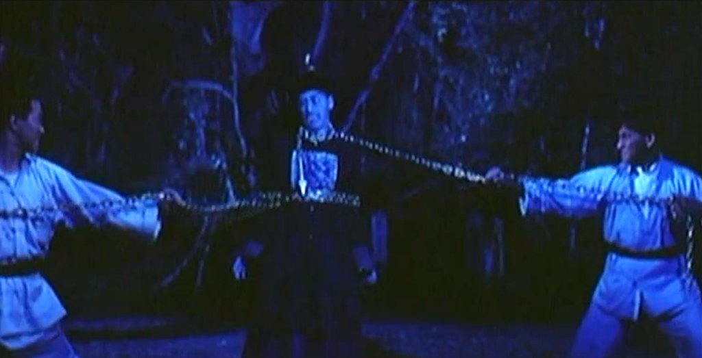 その後、師匠と合流した二人ですが、キョンシー隊を率いる訓練の一環で、ホーが一人でキョンシーを移動させる術を用いて、