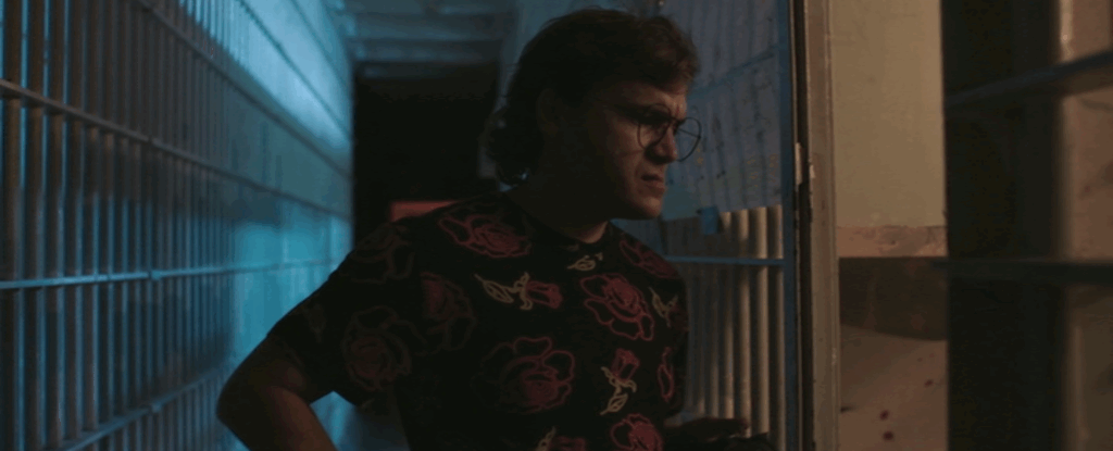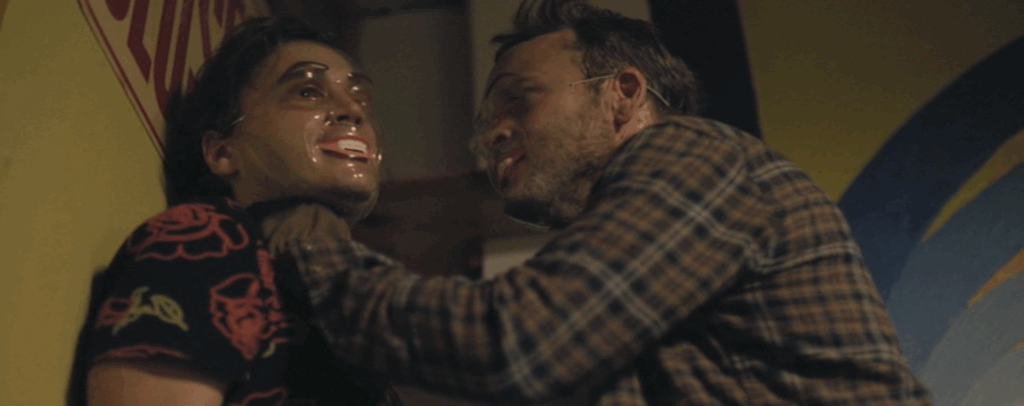 メンバーの一人アレックス(エミール・ハーシュ)のサイコが暴走、応戦に行ったエロ店主も返り討ちに合うという感じで、あっという間に修羅場と化してしまいます。
