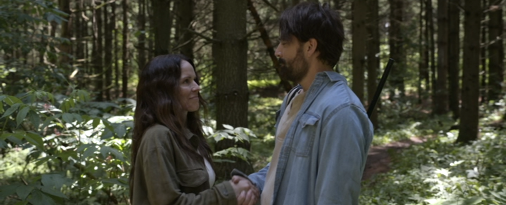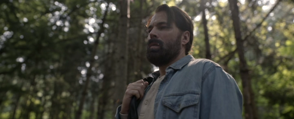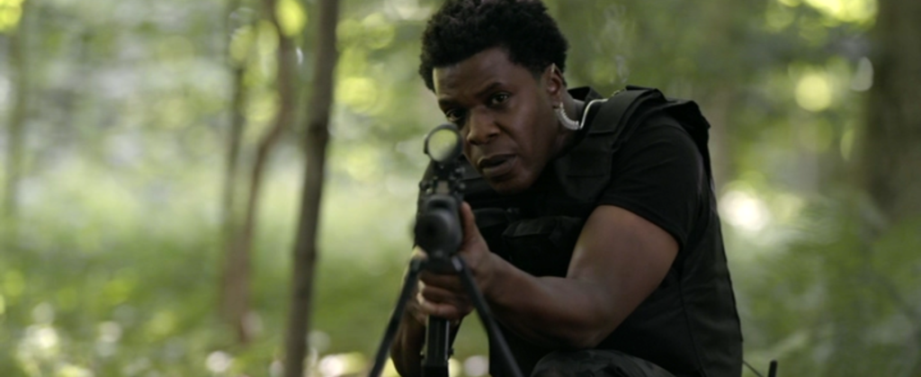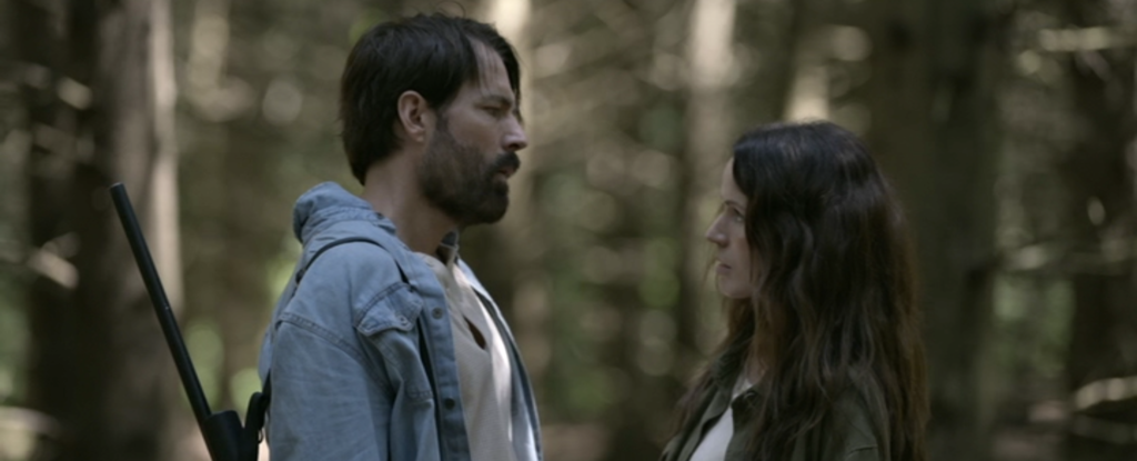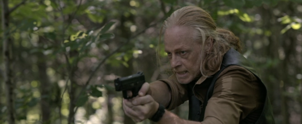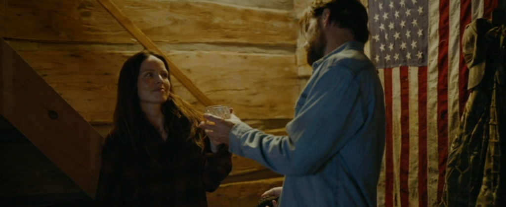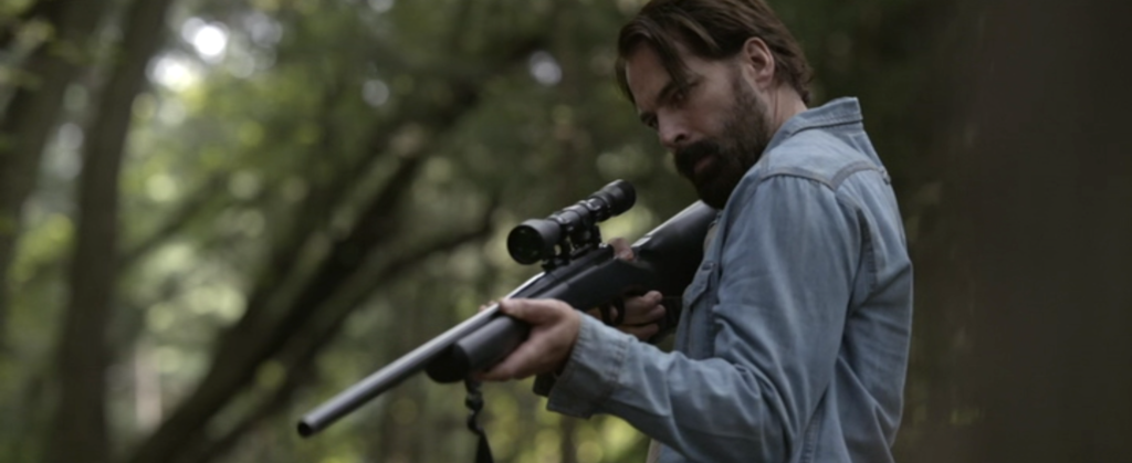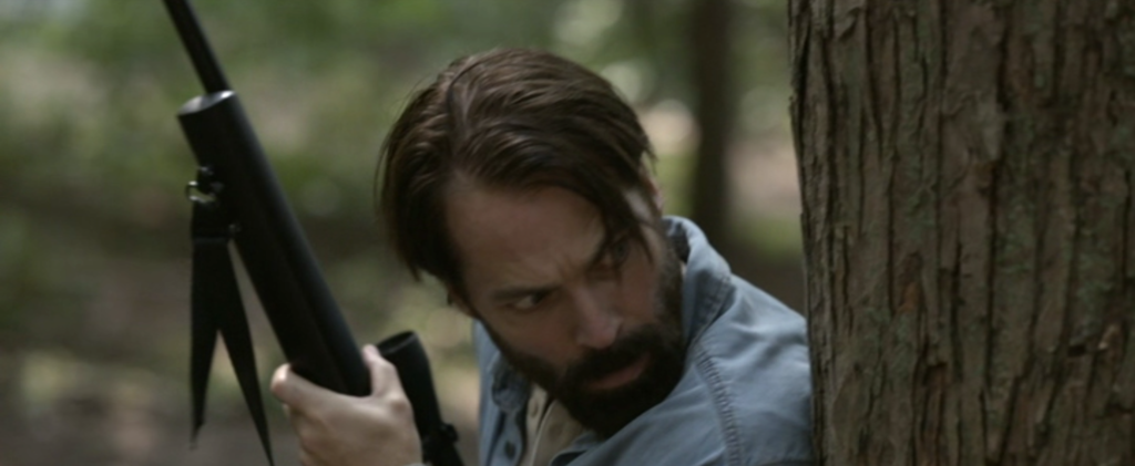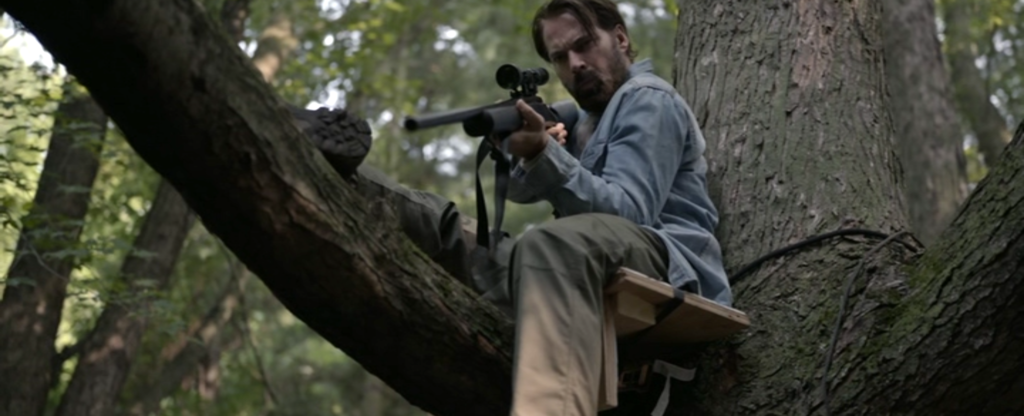 、、、、、、森で、動物の狩りをしていた真っ最中のその土地の所有者であり、元グリーンベレーでもあるジェイク(ティム・ロゾン)がスッと姿を現します。